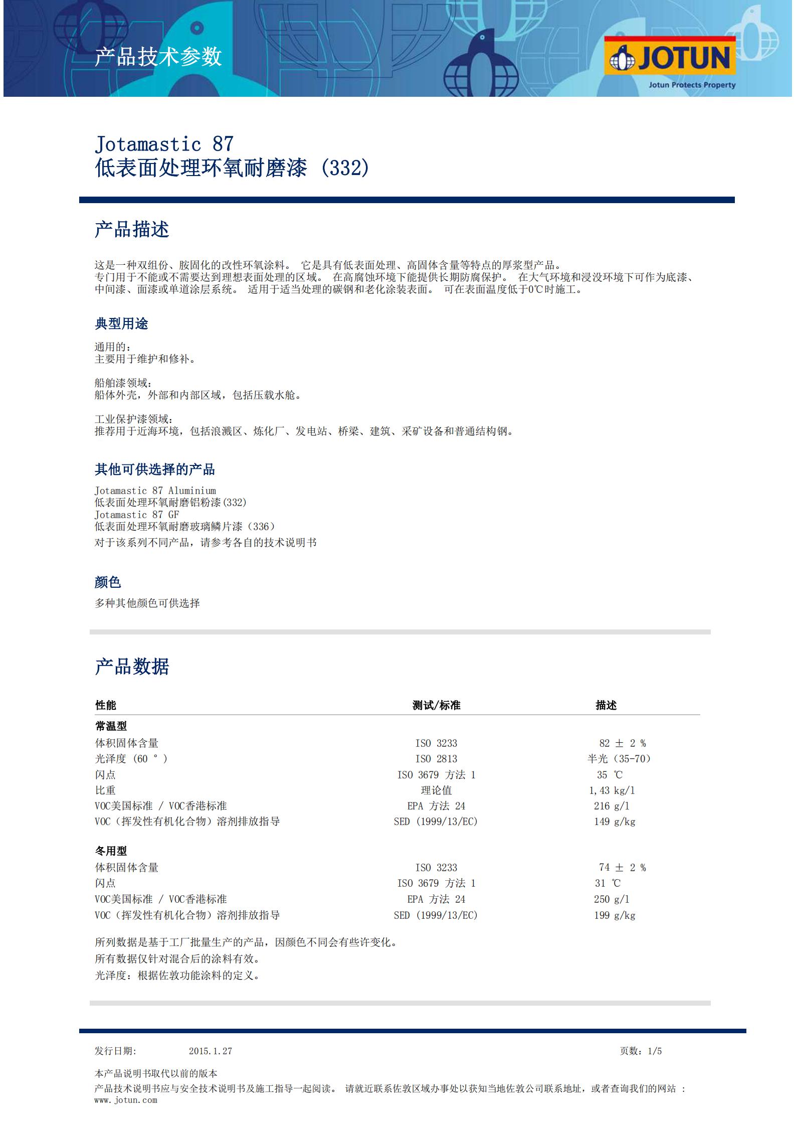 TDS-Jotamastic+87-低表面处理环氧耐磨漆